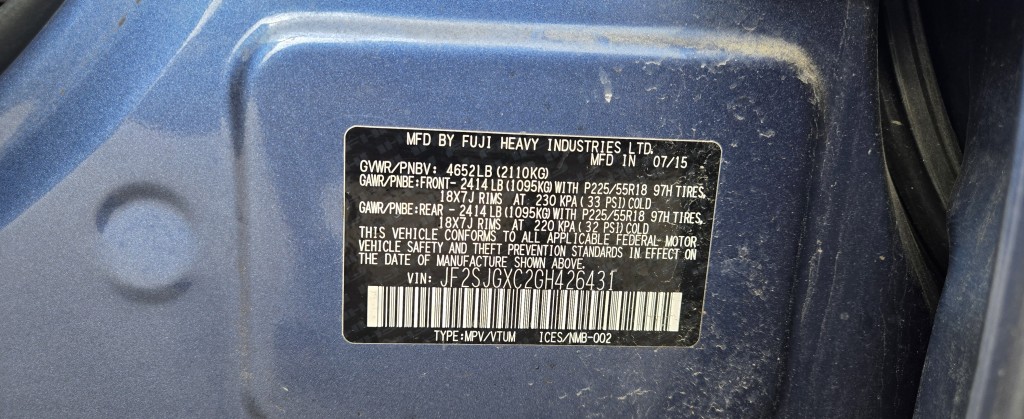 | VIN #: | JF2SJGXC2GH426431 |